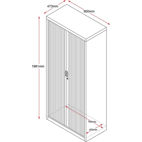 • Rapidline Go Tambour Door Cupboard No Shelves Included 900W x 473D x 1981mmH White