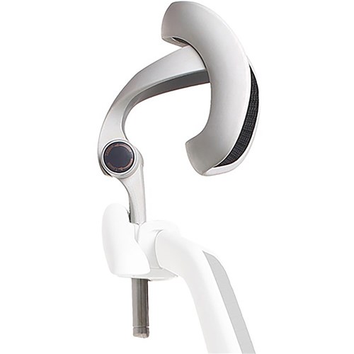 Luminous Head Rest with integrated coat hanger. White Frame - Moulded foam with black fabric upholstery. Headrest adjustment of 32mm with 4 locking positions. Suitable for: Luminous Task. Head rest only, chair is not included.