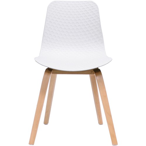 Rapidline Lucid Breakout Room Chair Light Oak Timber Leg White Patterned Poly Shell