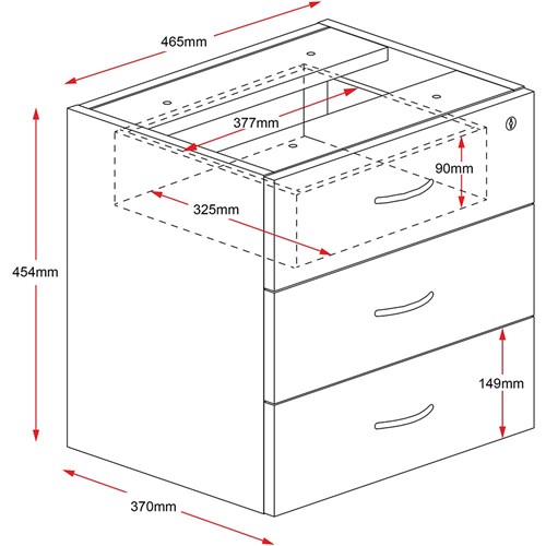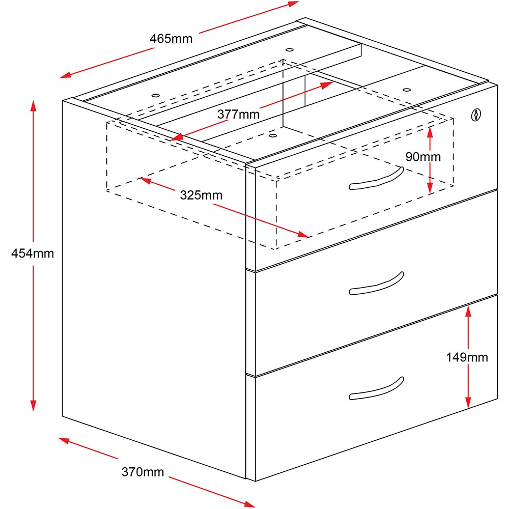 • Rapidline Rapid Worker Fixed Desk Return Pedestal 3 Drawer 465W x 370D x 454mmH Ironstone