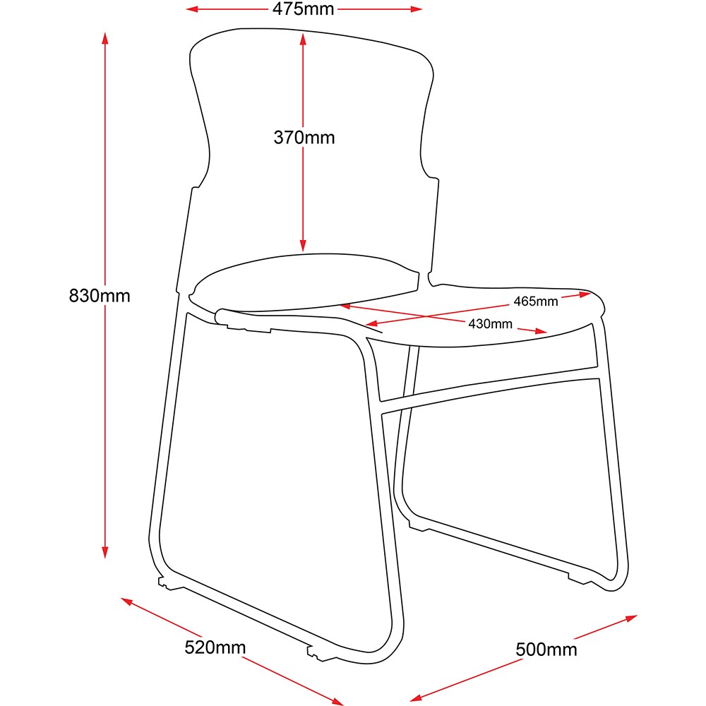 Solid design with large back and seat and rigid chrome sled base. Robust design. Links and stacks and can be moved with a trolley. Tested to Australian standards and BIFMA certified. Tested to AS/NZS 4688 Australian standard. Works with Z Trolley. No assembly required. Chair Dimensions: Seat 465W x 430D x Back 370H x Seat 440mmH. 3 Year Manufacturer's Warranty.