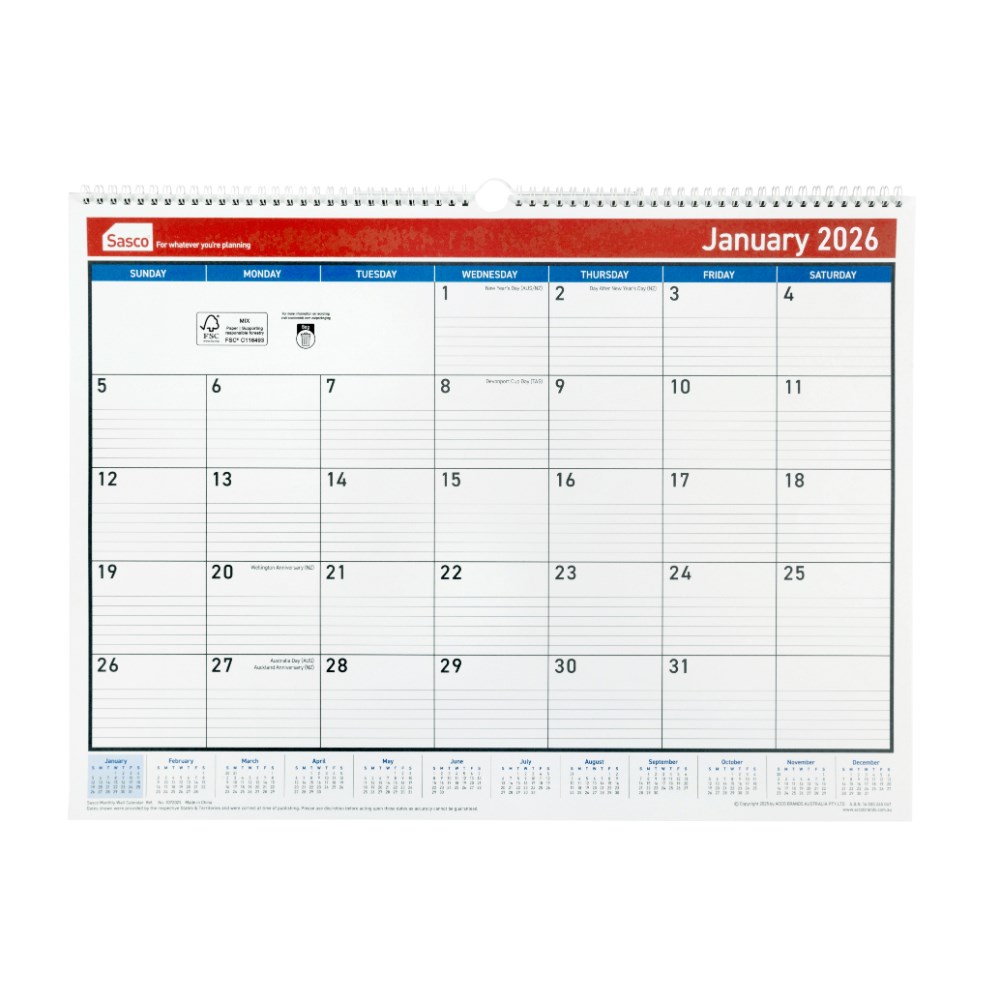 Sasco Wall Calendar 530 x 395mm Month To View White