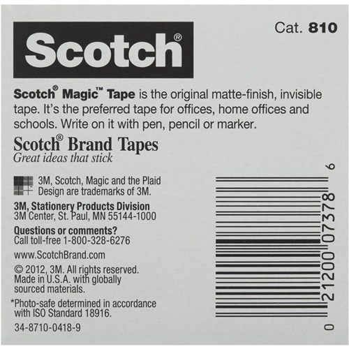 Mend it, seal it and secure it with this permanent matte tape. Non-yellowing. Can be written on and disappears when applied. Will not show up on faxes or photocopies and remains invisible over time.