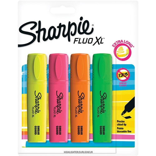 Sharpie Fluro XL Highlighter Chisel Tip 5mm Assorted Pack Of 4