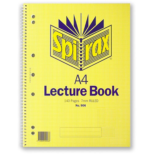 Spirax 906 Lecture Book Perforated A4 Ruled 140 Page Side Opening