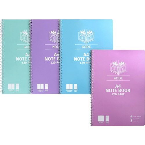 Unique Metallic Shimmer Cardboard Covers in five colours. Silver Wire Binding. 7mm Ruled Lines. 120 Pages. Assorted of five colours.