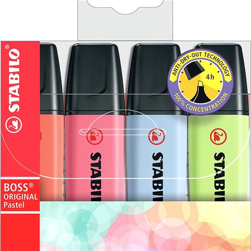 Stabilo Boss 70/4-3 Highlighter 2-5mm Pastel Assorted Wallet of 4