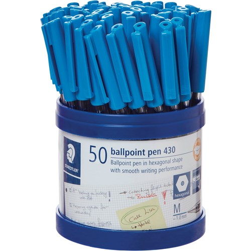 Staedtler 430 Stick Ballpoint Pens Medium 1mm Blue Cup of 50