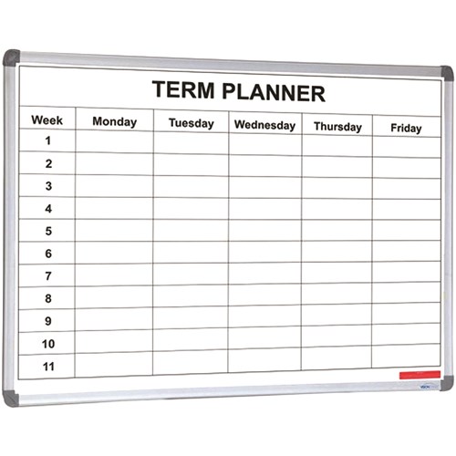 School Term Planner divided into 11 weeks and School days. 1 Year Surface Warranty. Supplied with Markers and Cleaning Cloth.